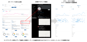 近年、企業広報活動において、従来の新聞・雑誌・テレビなどへの情報発信だけでなく、SNS上での生活者の反応や論調を把握することが求められるようになっています。特に、X(旧Twitter)をはじめとするソーシャルメディアは、消費者の生の声や関心事をリアルタイムで収集できる貴重な情報源として位置づけられており、メディアに取り上げられやすいプレスリリースを作成するためには、こうしたパブリシティ露出とSNSデータとを統合的に活用することが重要になっています。